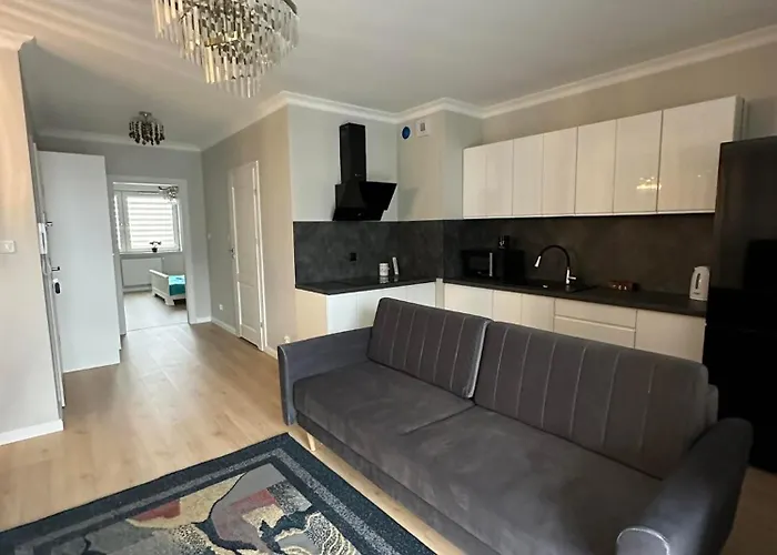 This 48 m^2 apartment is equipped with a microwave oven, an electric kettle, and a fridge in a mini-kitchen. Wiklinowa 01 bus stop is a mere 10 minutes' walk away.